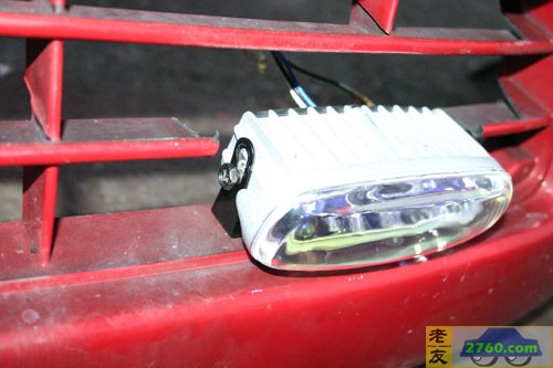 切割完保杆栅栏后,就可以利用电钻将两边的雾灯固定铁架装上。